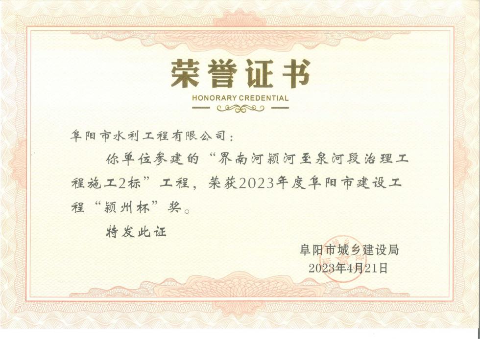2023年度阜陽市建設(shè)工程“潁州杯”獎(jiǎng)