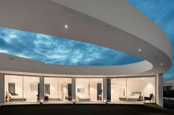這種平衡感貫穿于整個建筑,橢圓形基底與漂浮在室外天井區(qū)域之上的洞口形成極大的反差,創(chuàng)造了積極空間和消極空間、密度與通風(fēng)、明與暗之間的動態(tài)關(guān)系。