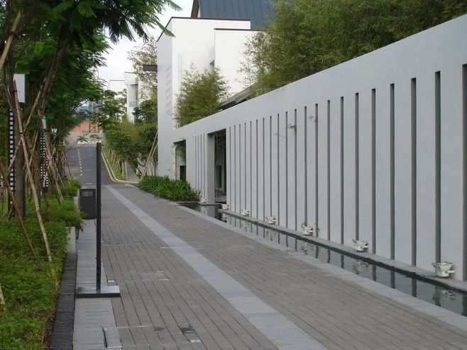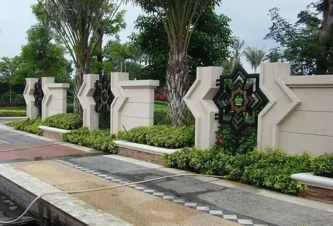 比如用植物和鐵藝搭配做的景觀圍墻;整體植物墻;混泥土搭建的圍墻;還有用構(gòu)成手法展現(xiàn)的開放式或半開放式圍墻等等。他們都根據(jù)景觀不同風(fēng)格來定位,它們不僅僅是完成它的功能性,更多是展現(xiàn)自己的美。